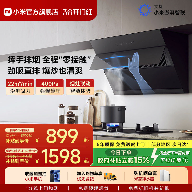 小米官方米家智能侧吸油烟机S1抽油烟机燃气灶套装家用厨房大吸力