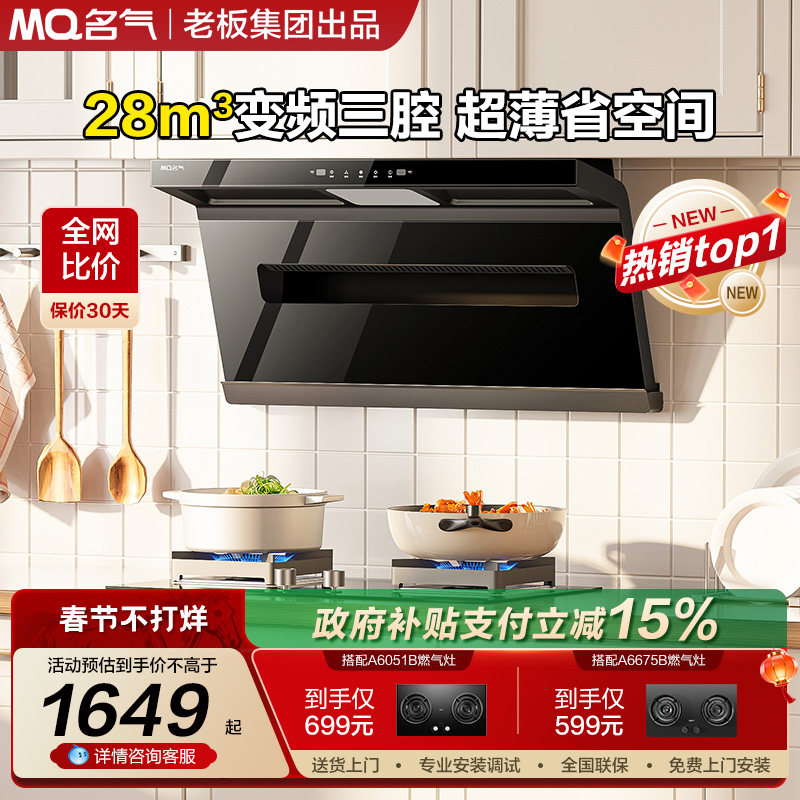 名气小黑翼Pro抽油烟机燃气灶套装顶侧双吸厨房家用A586老板出品