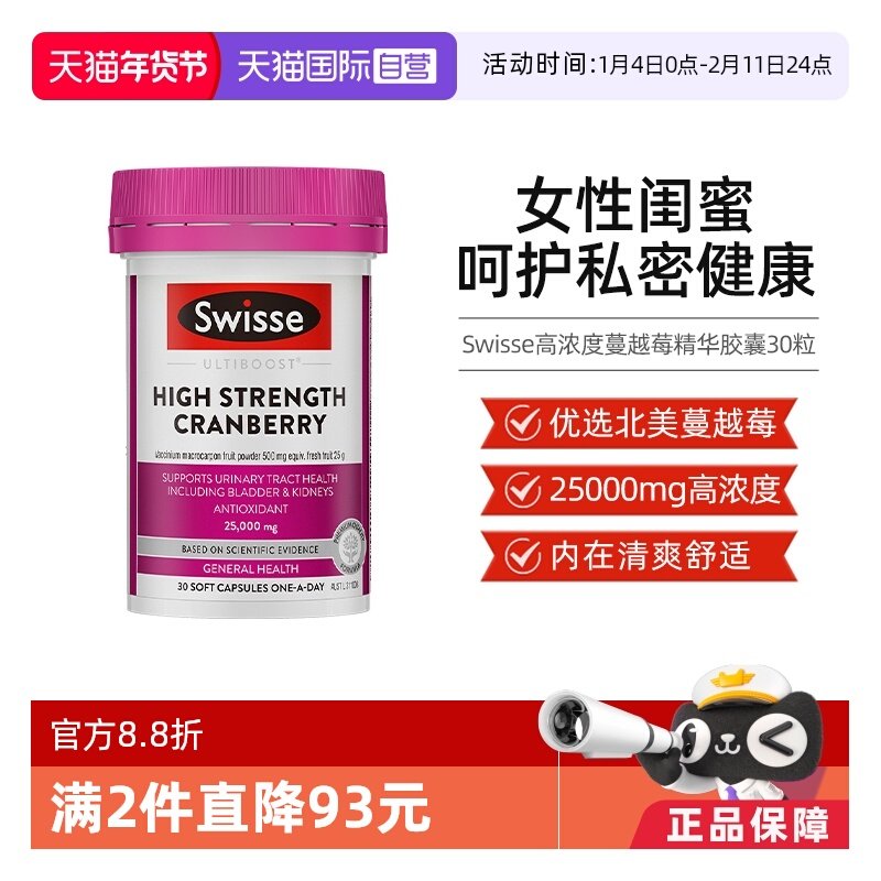【自营】Swisse高浓度蔓越莓精华胶囊30粒花青素女性保养调理卵巢