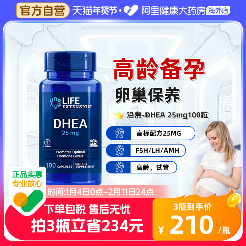 香港直邮沿寿Life extension女性备孕DHEA25mg卵巢保养胶囊补充剂