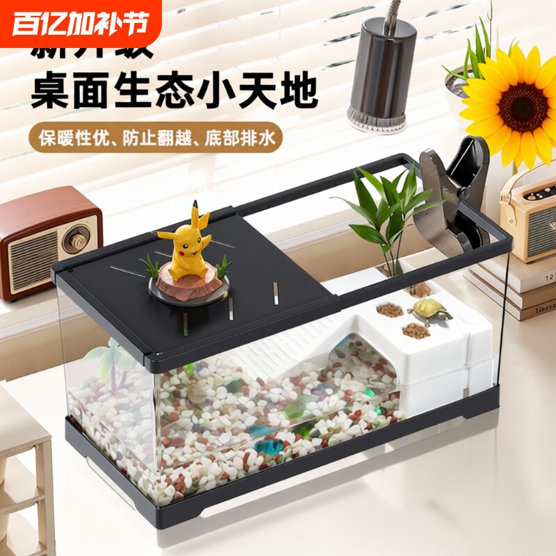 乌龟饲养缸家用专用箱晒台爬台生态造景龟缸盖鱼缸客厅桌面办公室