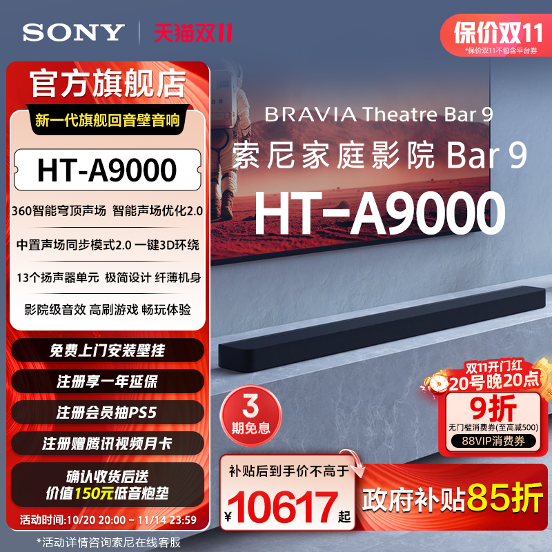 【套装】索尼HT-A9000全景声回音壁360智能穹顶 4K/120Hz家庭影院