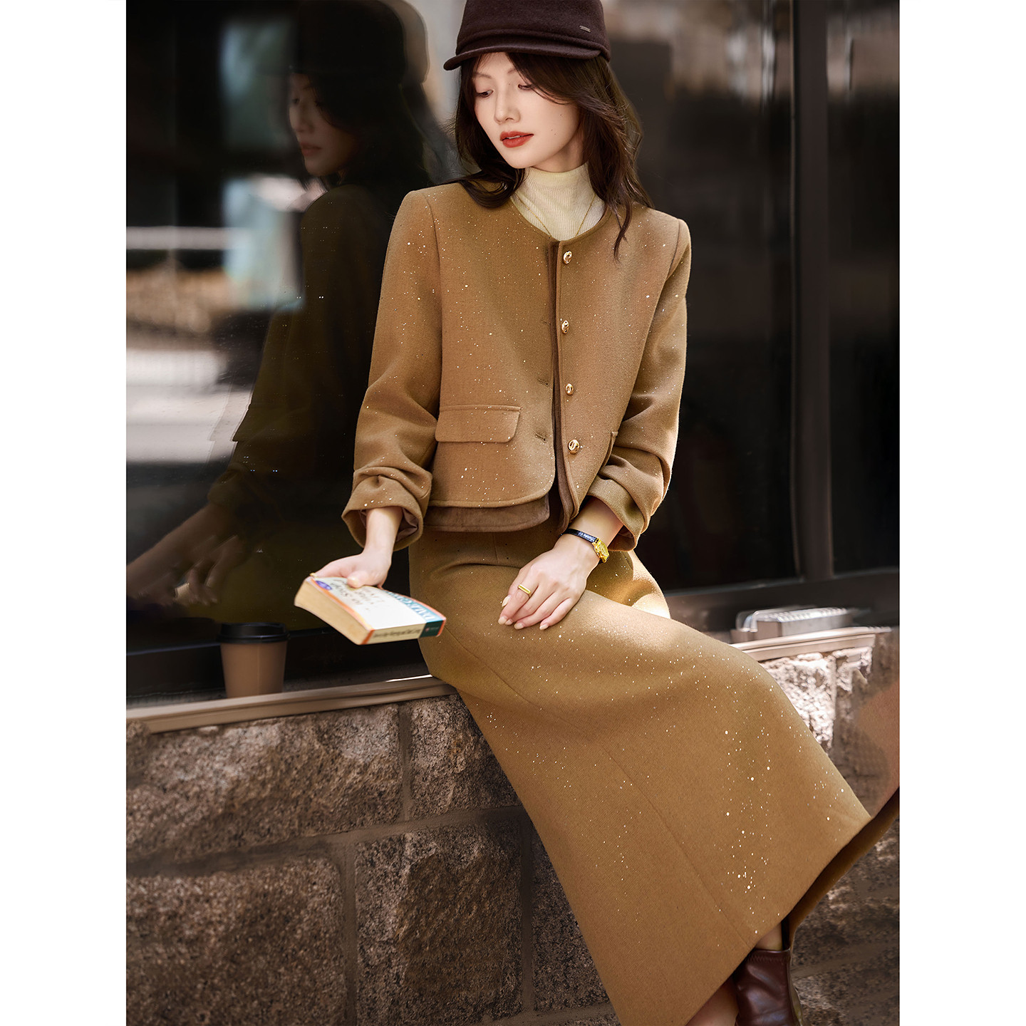 毛呢外套半裙套装2025年冬季新款女装两件套SXTZJ25153