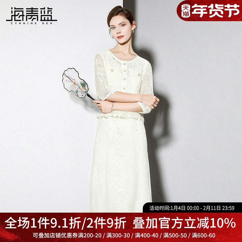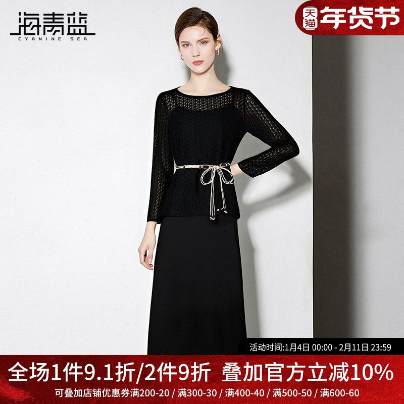 海青蓝 蕾丝套装秋冬女2025新款高级时尚气质高级设计女装两件套