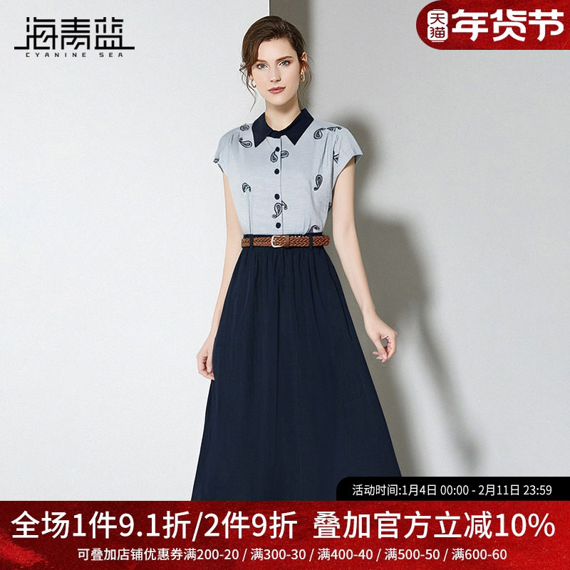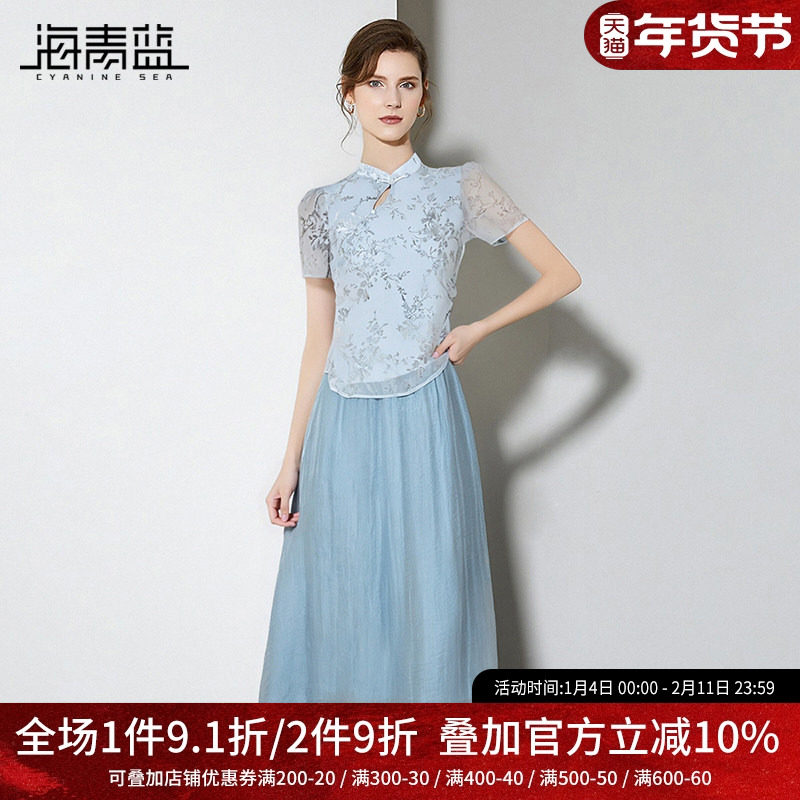 海青蓝 套装夏女2025新款夏季中式立领短袖上衣女装两件套半身裙