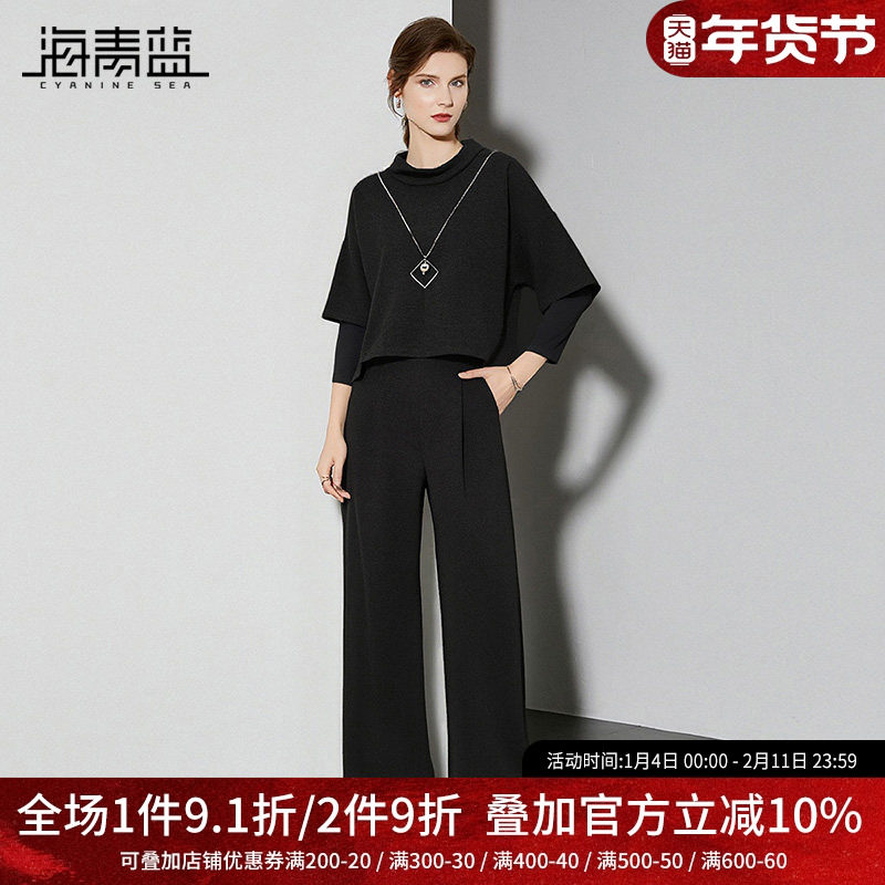 海青蓝 套装女2025年新款纯色蝙蝠袖高级时尚大方气质女装两件套