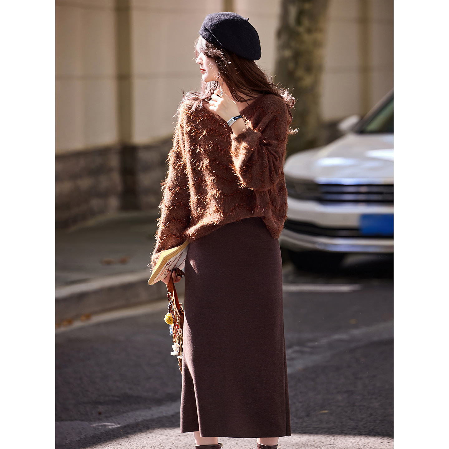 苏醒的乐园含绵羊毛圆领毛衣半裙套装2025年冬季新款女装两件套