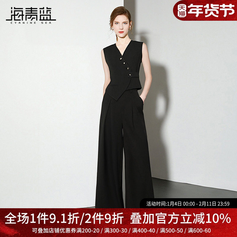 海青蓝 无袖套装女2025年新款夏季高级设计纯色休闲裤女装两件套