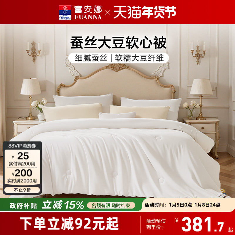 富安娜2025新款大豆纤维蚕丝被芯四季被冬厚被被子学生宿舍春秋被