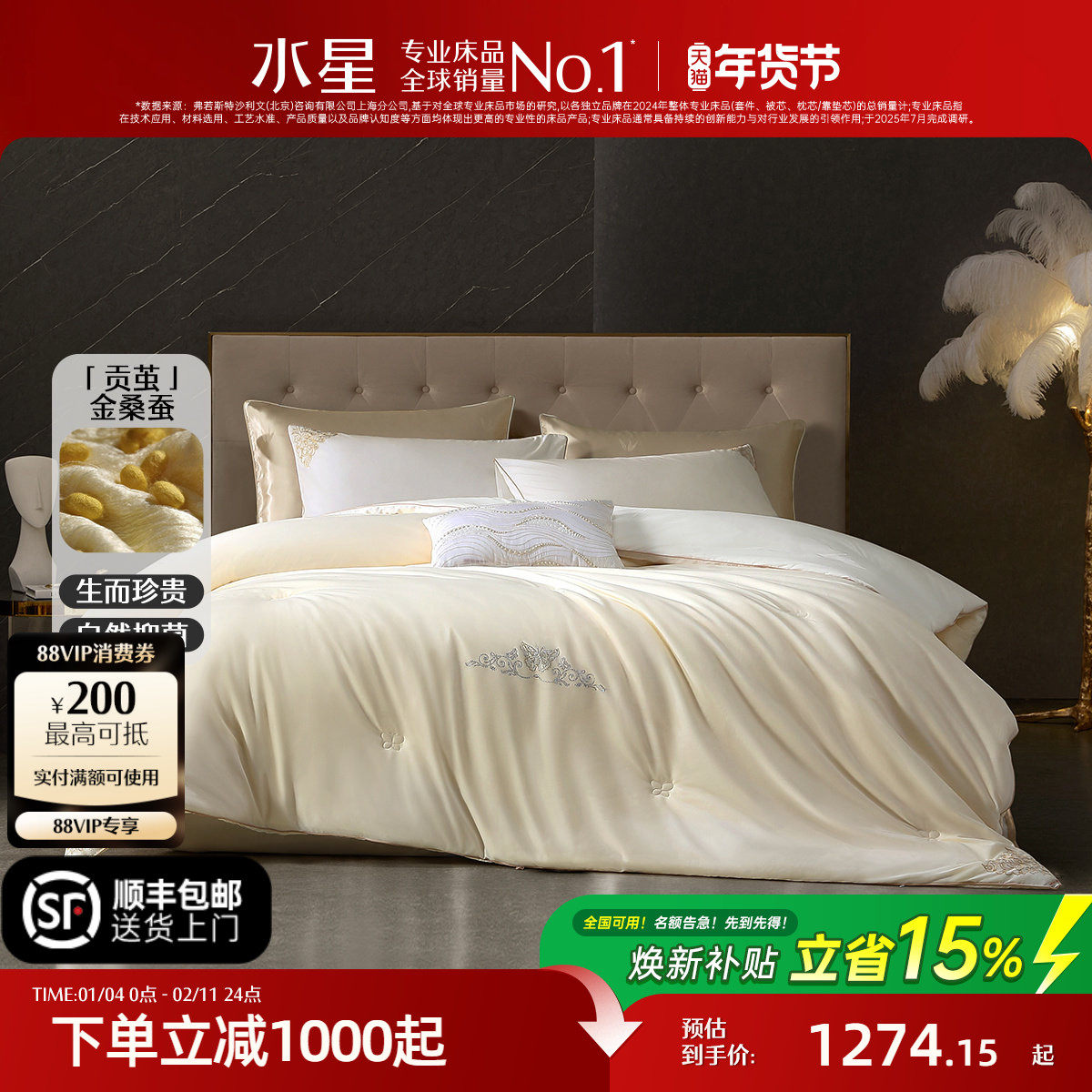 水星家纺金桑蚕丝冬被A类抑菌保暖被子纯棉蚕丝被芯秋冬轻奢礼物