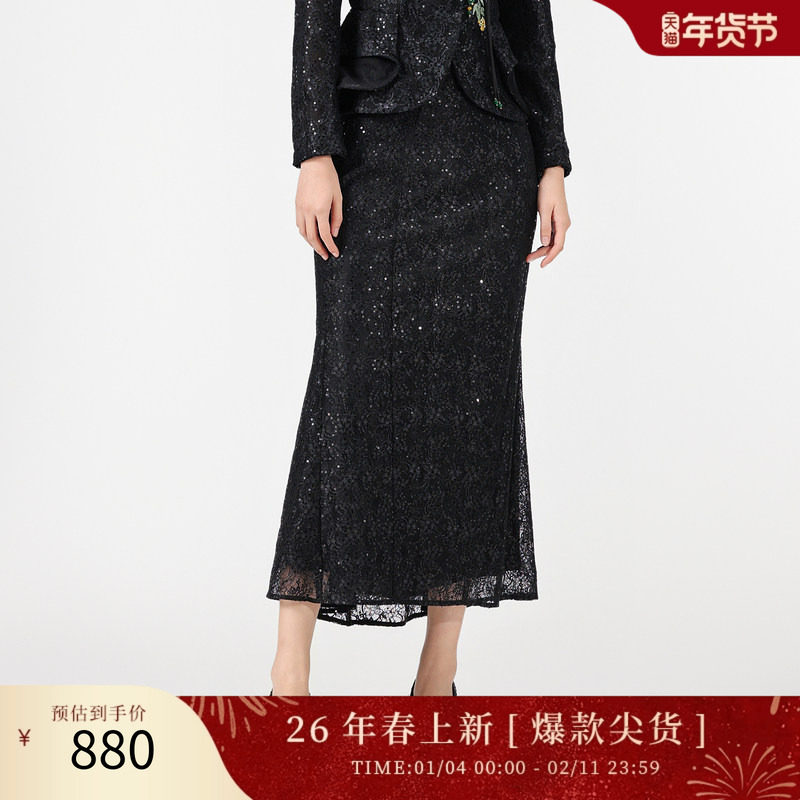 SUSSI/古色春商场同款蕾丝绣片鱼尾半身裙晚宴礼服中长款女装