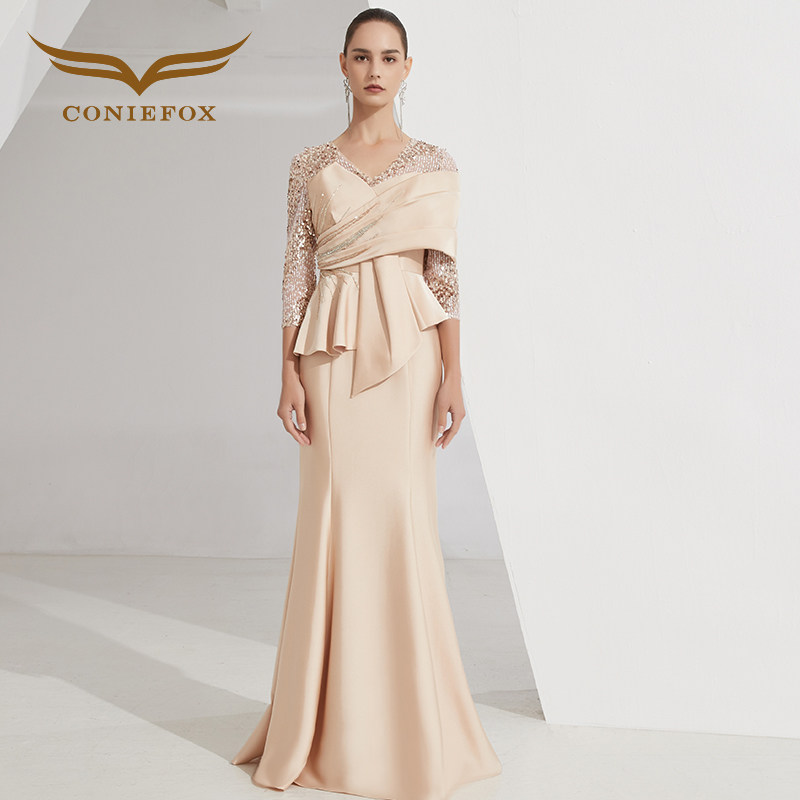 高贵中年女装春秋季连衣裙喜婆婆鱼尾裙礼服中长款大码婚礼妈妈装