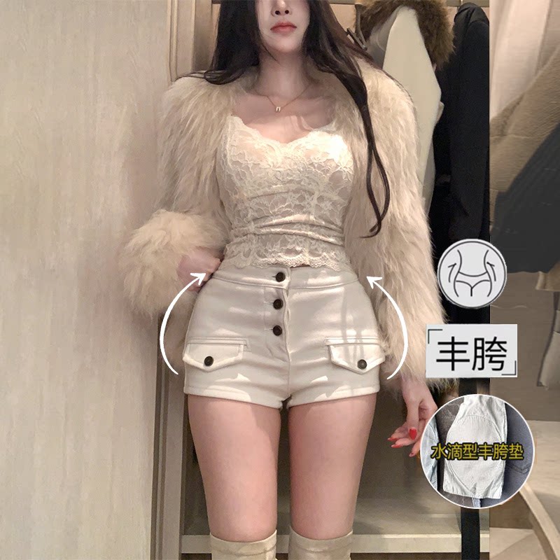 - 韩版皮短裤