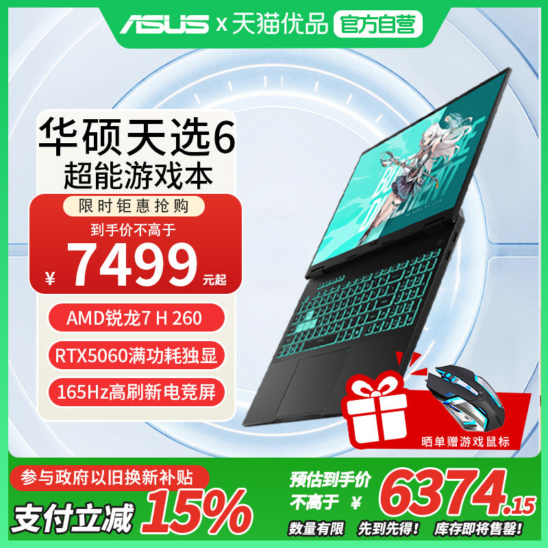 【全国国补15%】华硕天选6 AMD锐龙7 H260 16英寸电竞AI游戏本笔记本电脑RTX5060独显学生办公设计本