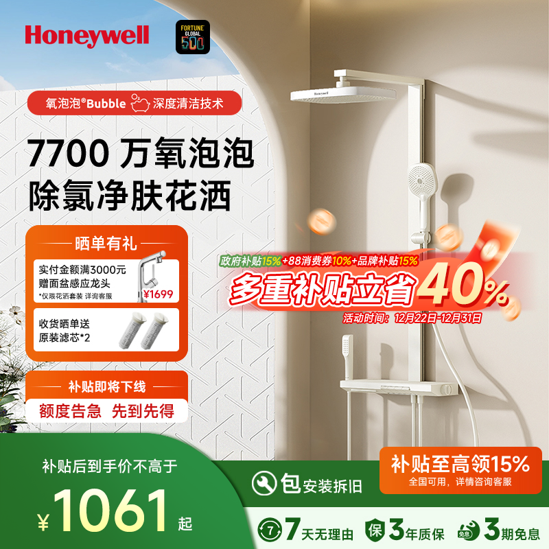 霍尼韦尔氧泡泡淋浴恒温花洒套装数显除氯过滤增压浴室淋雨沐浴器