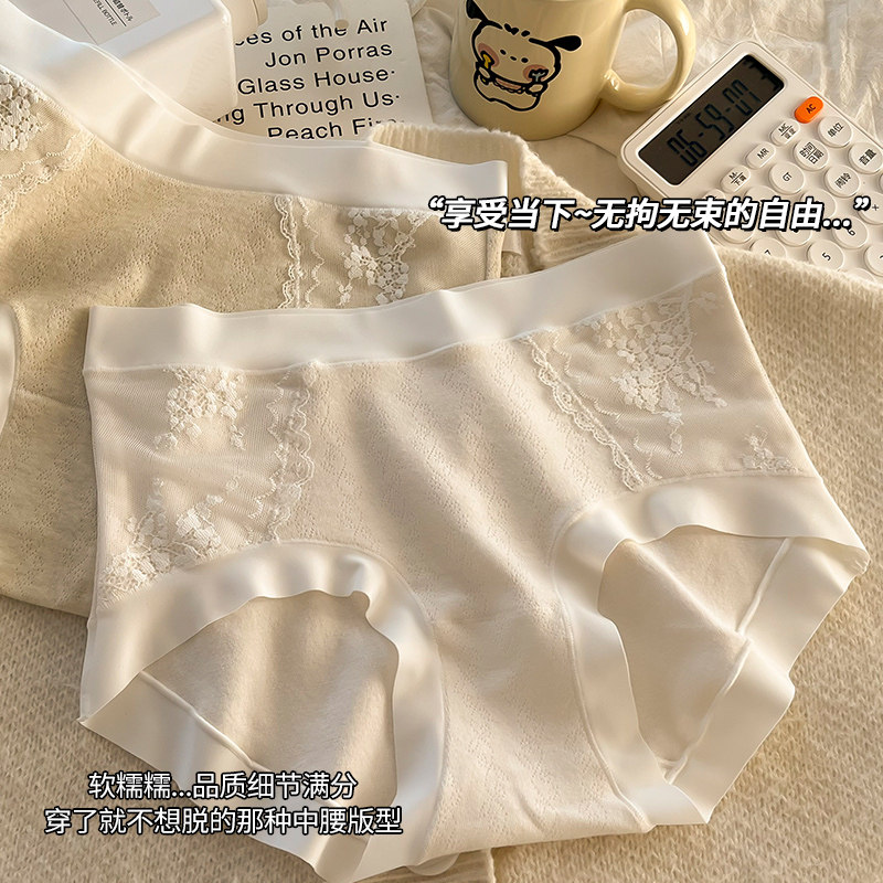 内裤女士无痕蕾丝中腰大码简约柔软短裤少女生日系可爱包臀三角裤