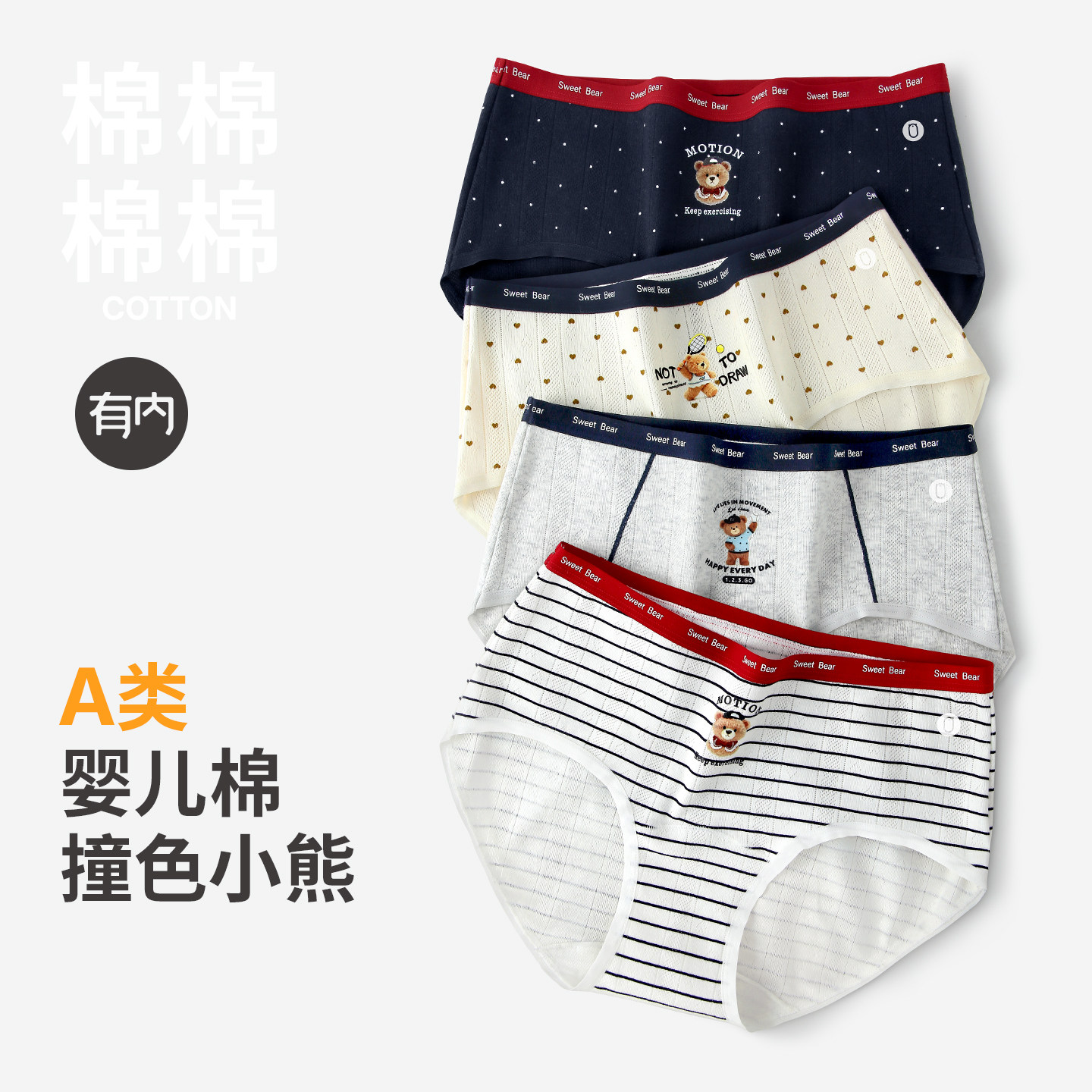 学院小熊~可爱少女高级感内裤女无痕透气中腰纯棉女士平角裤舒适