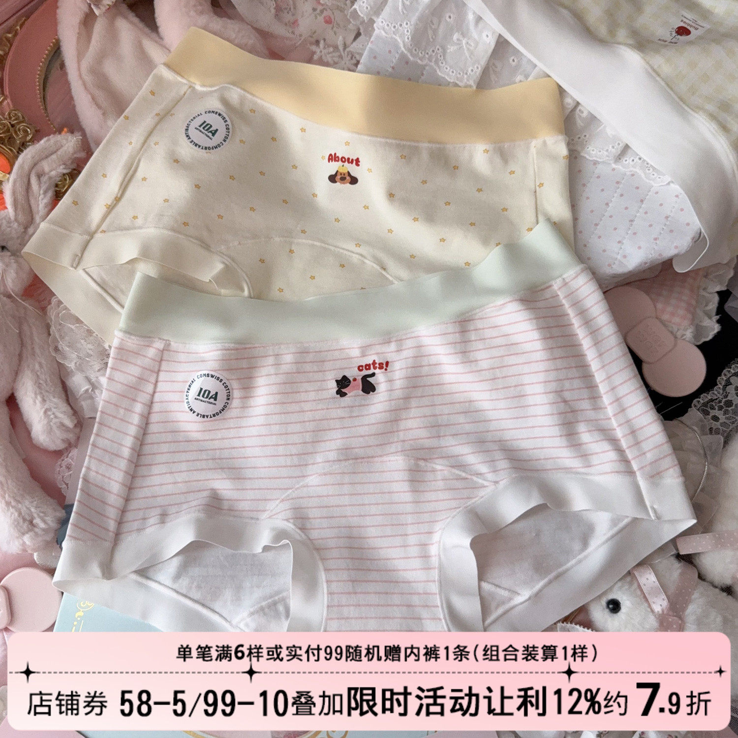 星星汪可爱卡通平角内裤女无痕边高弹裸感A类精梳棉纯棉加长裆10A