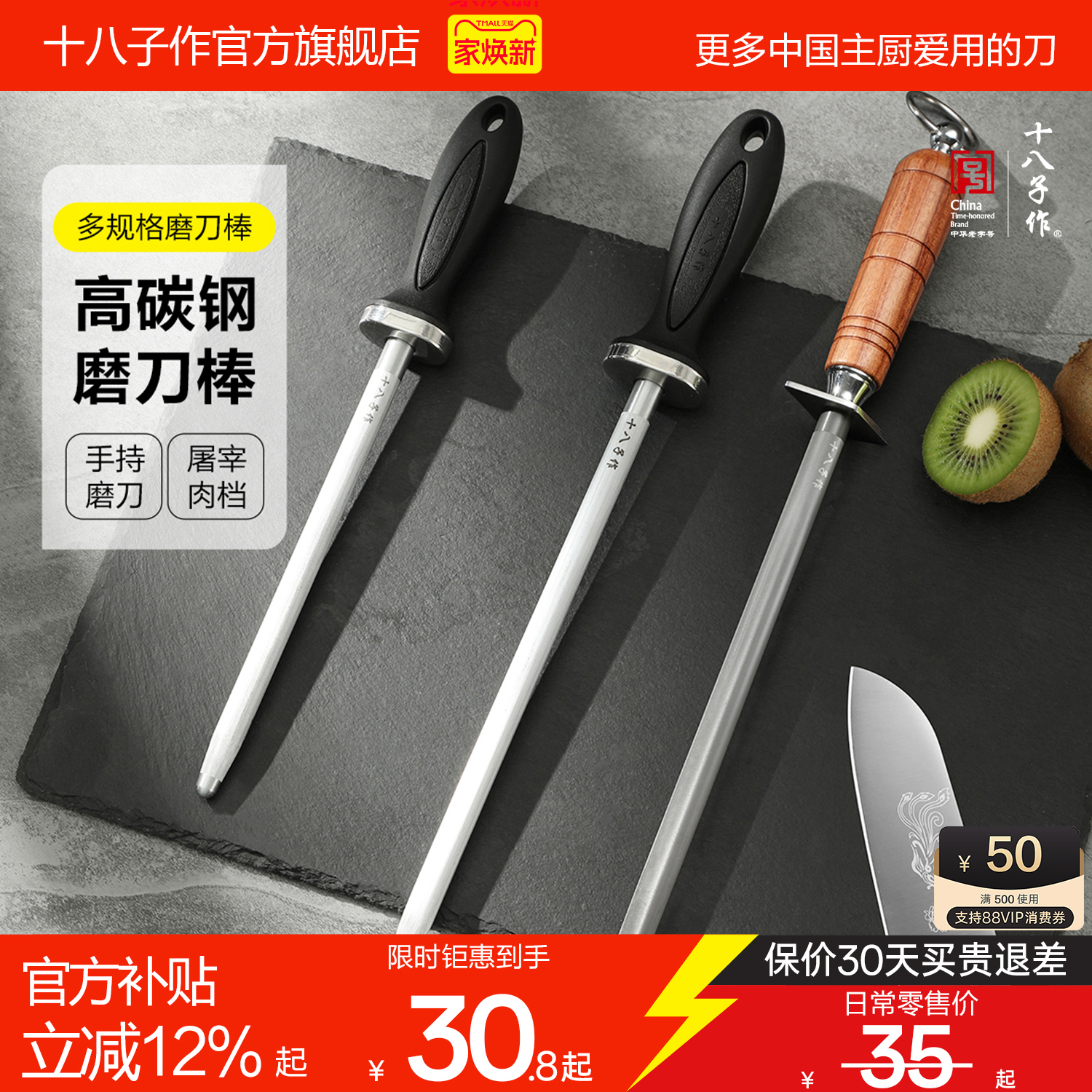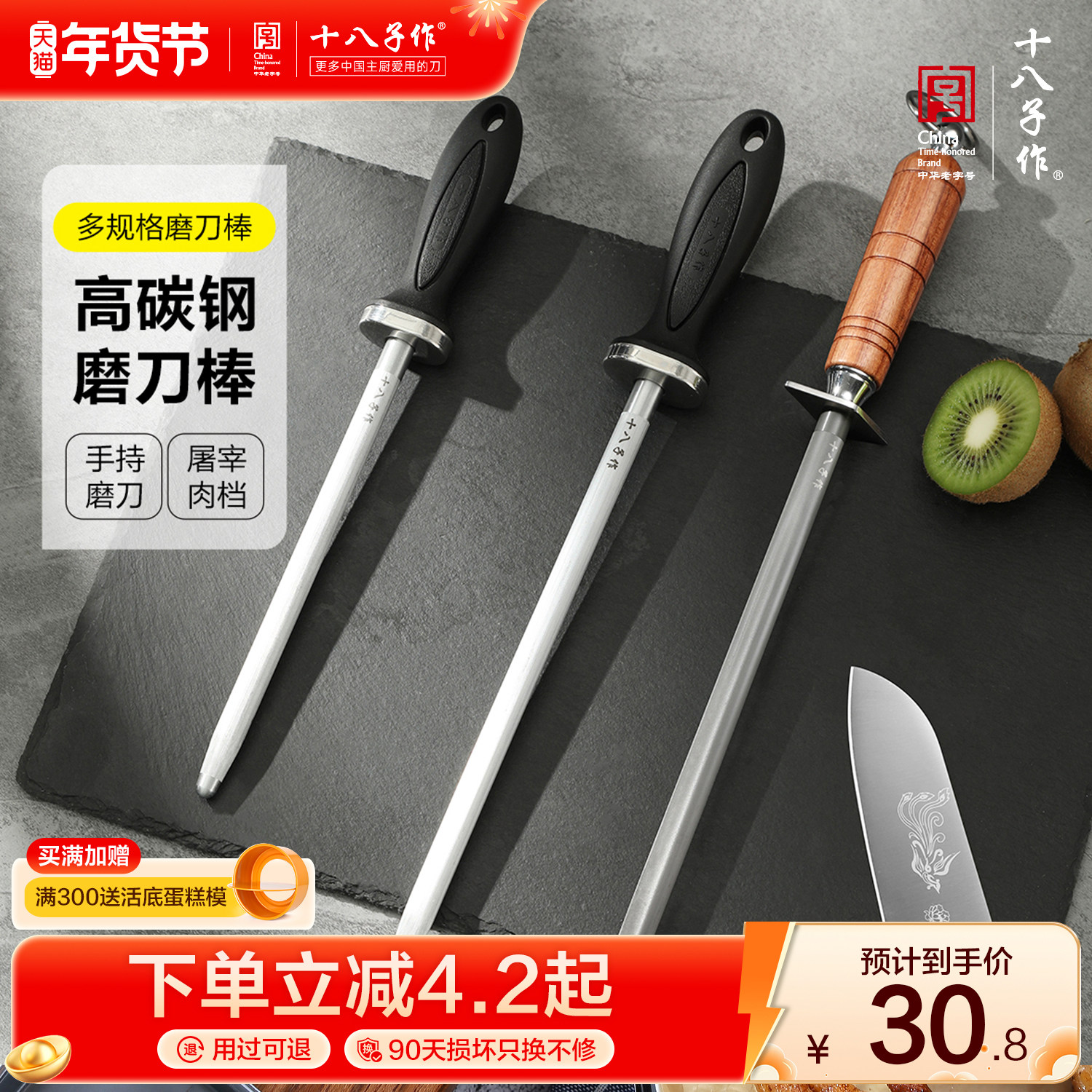 十八子作磨刀棒专业菜刀开刃工具屠夫专用钢棒辊官方旗舰店磨刀石