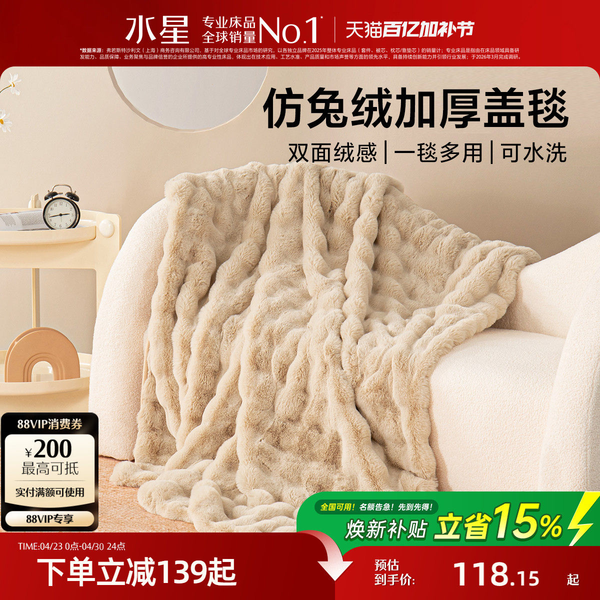 水星家纺仿兔绒毯毛毯冬季加厚沙发盖毯办公室午睡毯宿舍保暖毯子