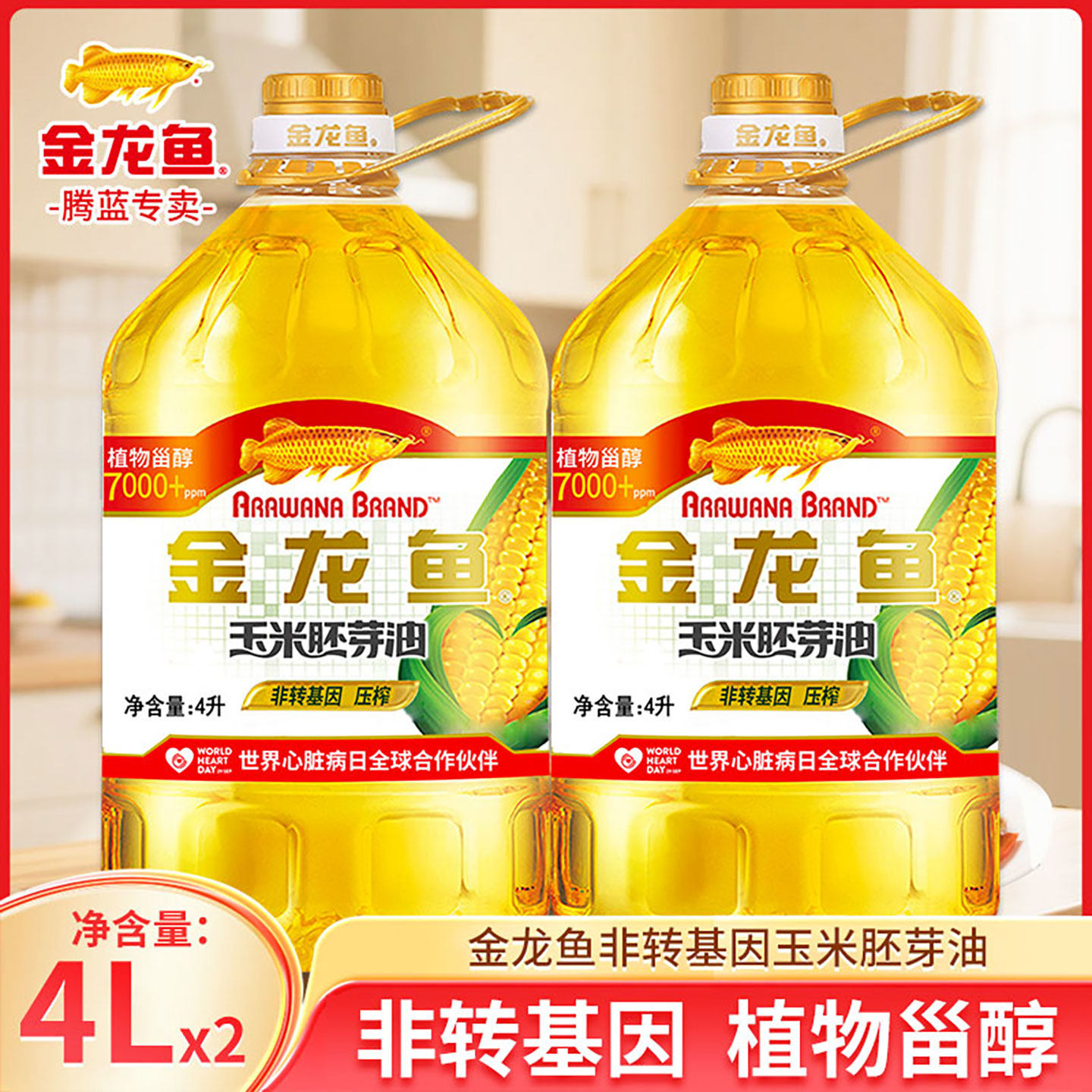金龙鱼玉米胚芽油4L*2桶非转基因家用炒菜商用压榨食用油粮油批发