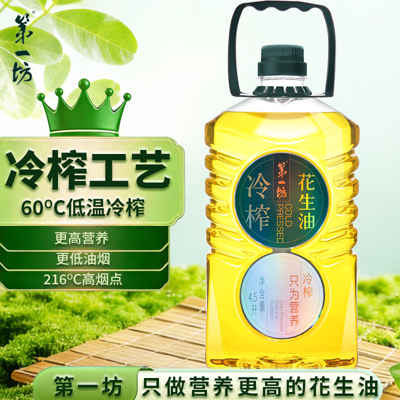 第一坊冷榨花生油4.5L食用油 家庭桶装 粮油批发 大桶装花生油