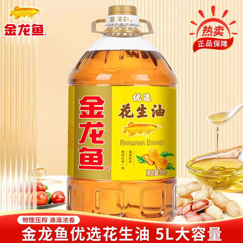 金龙鱼优选花生油5L桶物理压榨一级食用油家用炒菜烹饪粮油批发