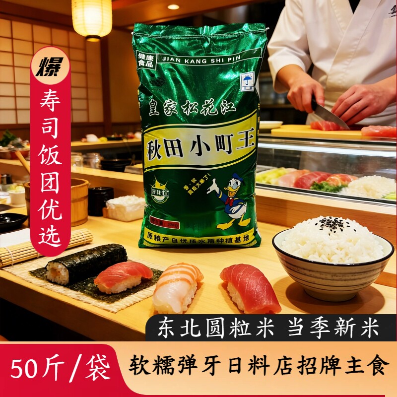 50斤批发皇家松花江秋田小町王东北圆粒米新米做寿司饭团软糯弹牙