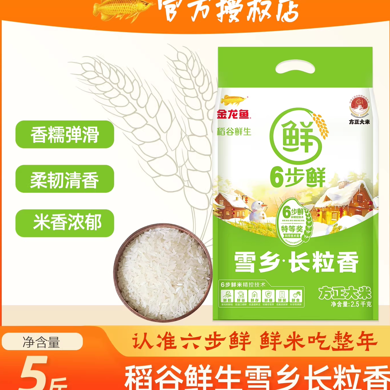 金龙鱼6步鲜雪乡长粒香五常大米2.5kg优质小包装新米粳米5斤批发