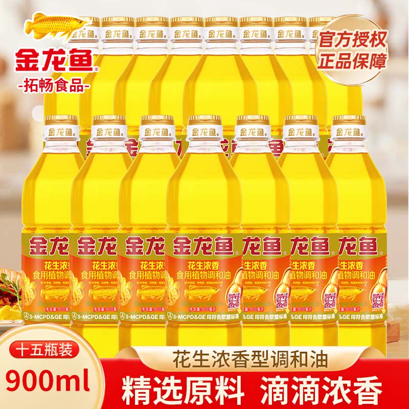 金龙鱼花生浓香香食用植物调和油900ml*15瓶整箱装小瓶油粮油批发