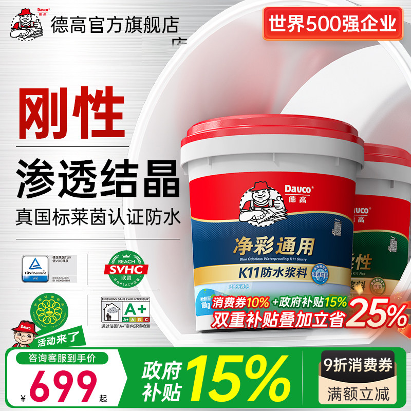 德高防水涂料K11厨卫防水补漏胶抗裂砂浆卫生间室内刚性柔性浆料
