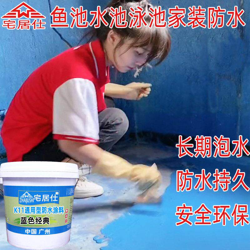 饮用水池阳台鱼池游泳池K11防水涂料材料补漏胶漆蓝色环保堵漏王