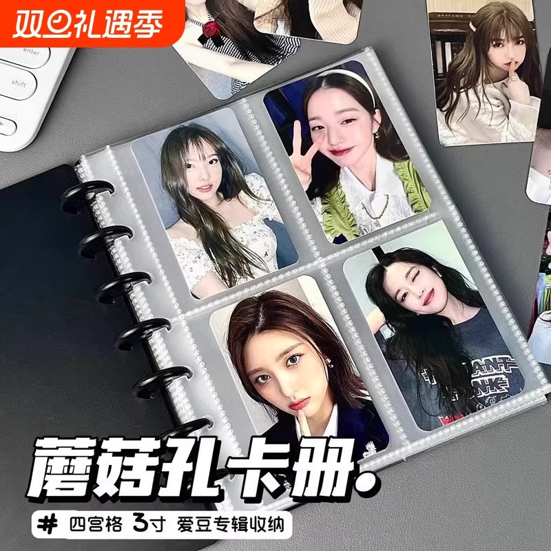 蘑菇扣卡册四宫格高颜值收藏纪念相册本明星爱豆专辑3寸拍立得透明活页收纳册