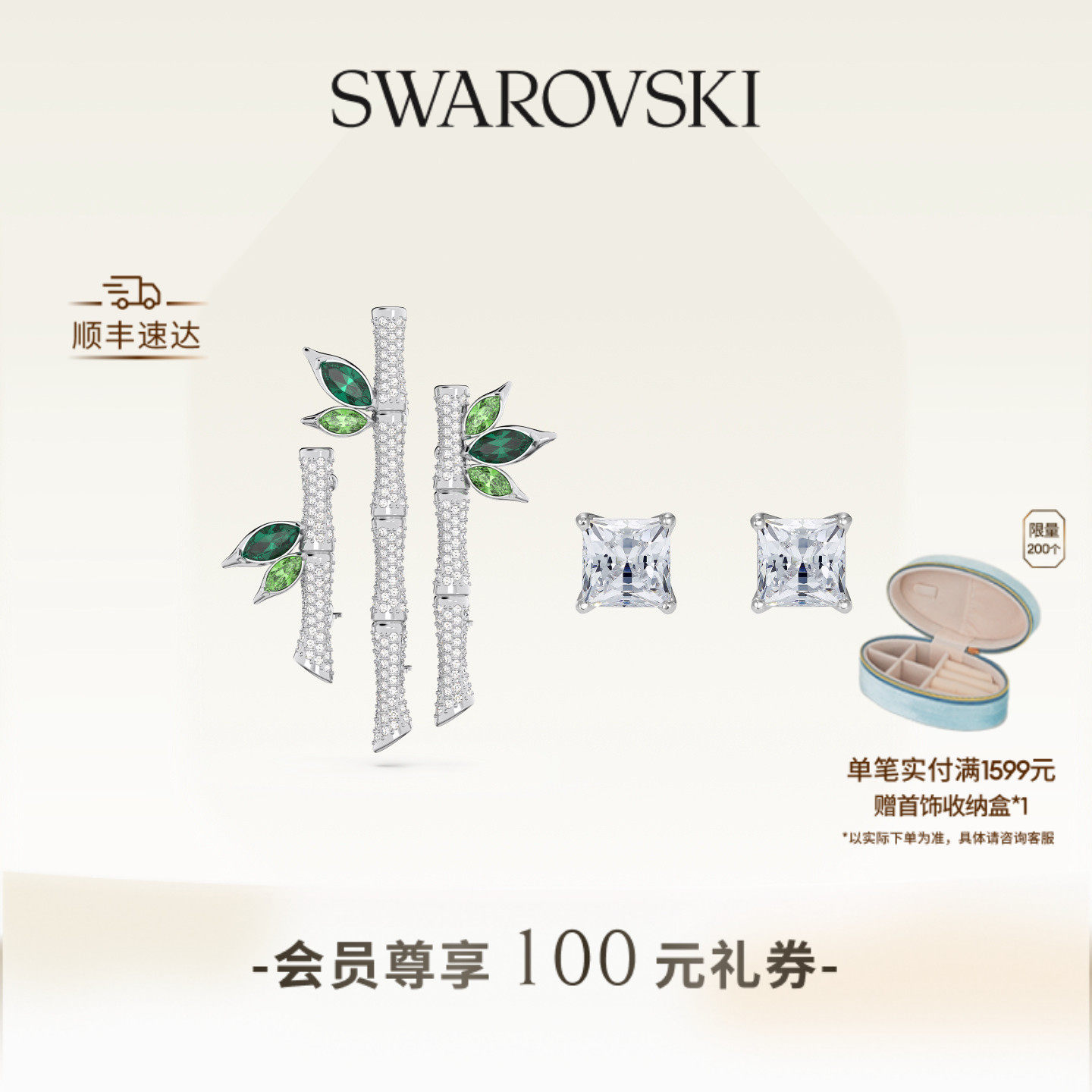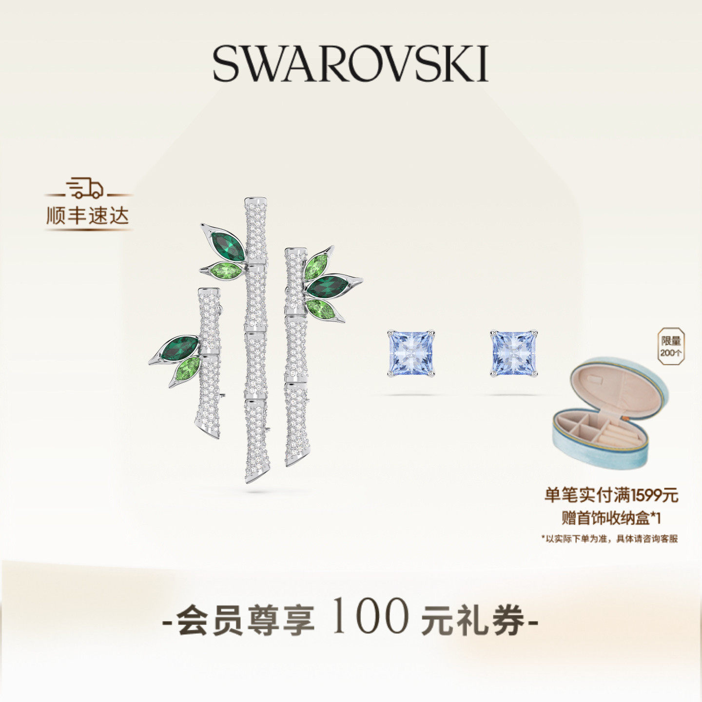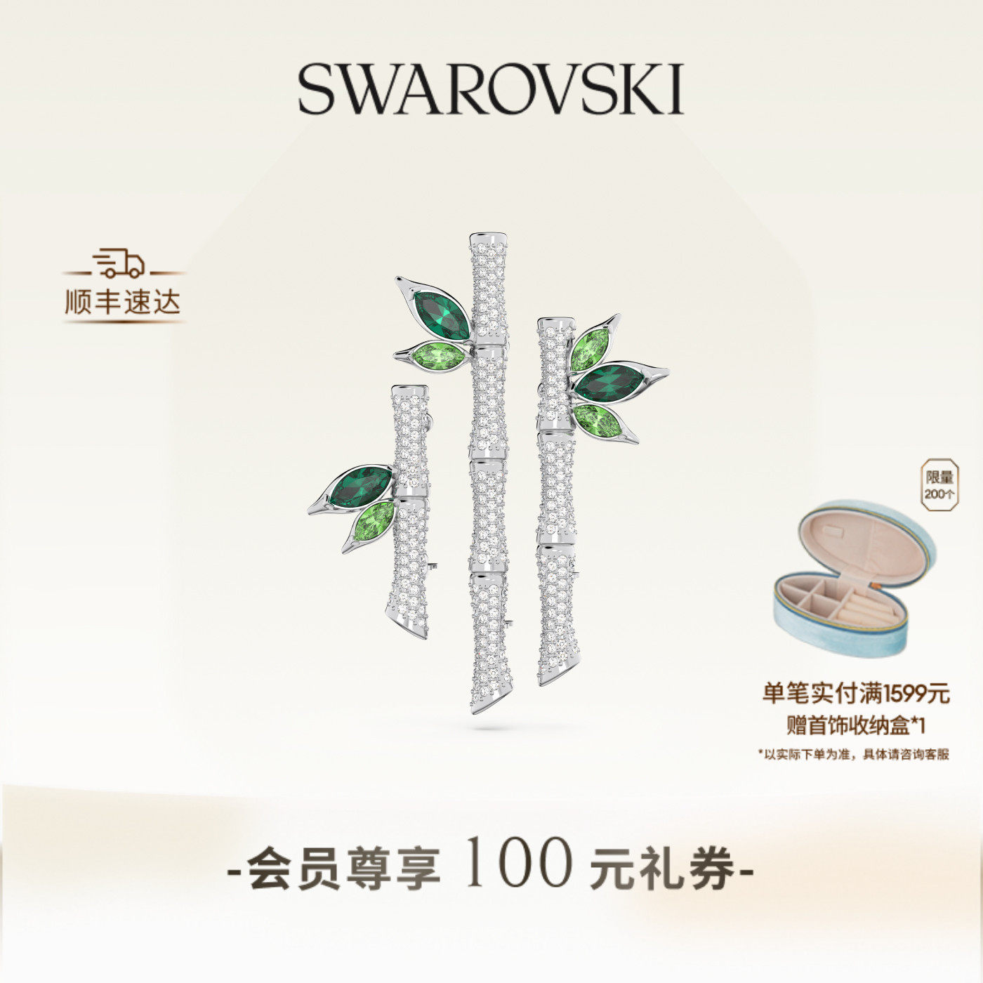 【新年礼物】施华洛世奇Dellium竹子胸针耳钉套组配饰饰品高级