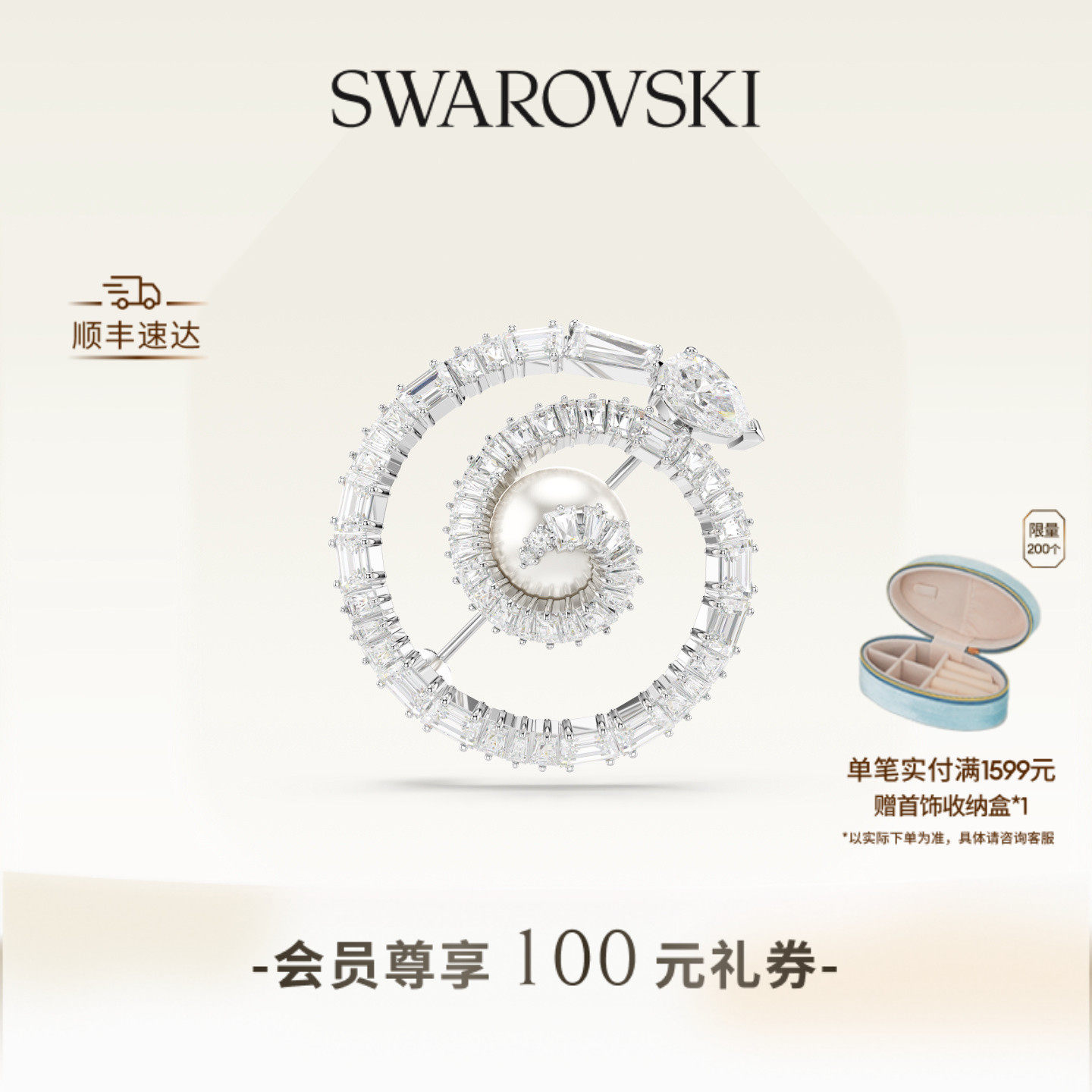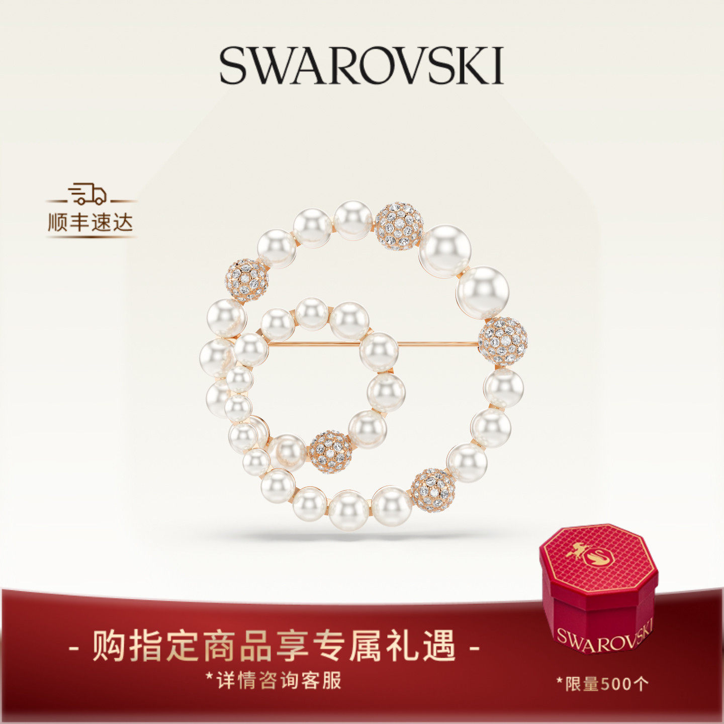 【新品】施华洛世奇Connexus圆环胸针仿珍珠高级配饰情人节礼物