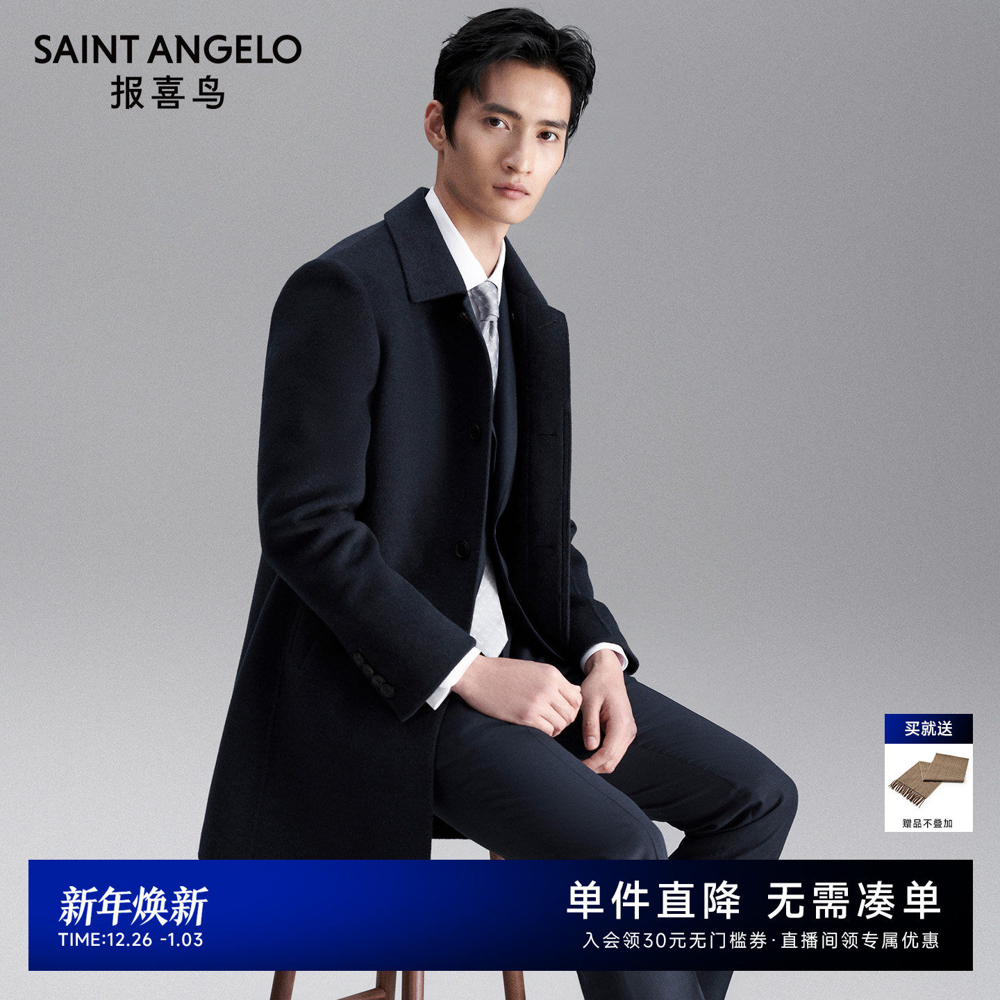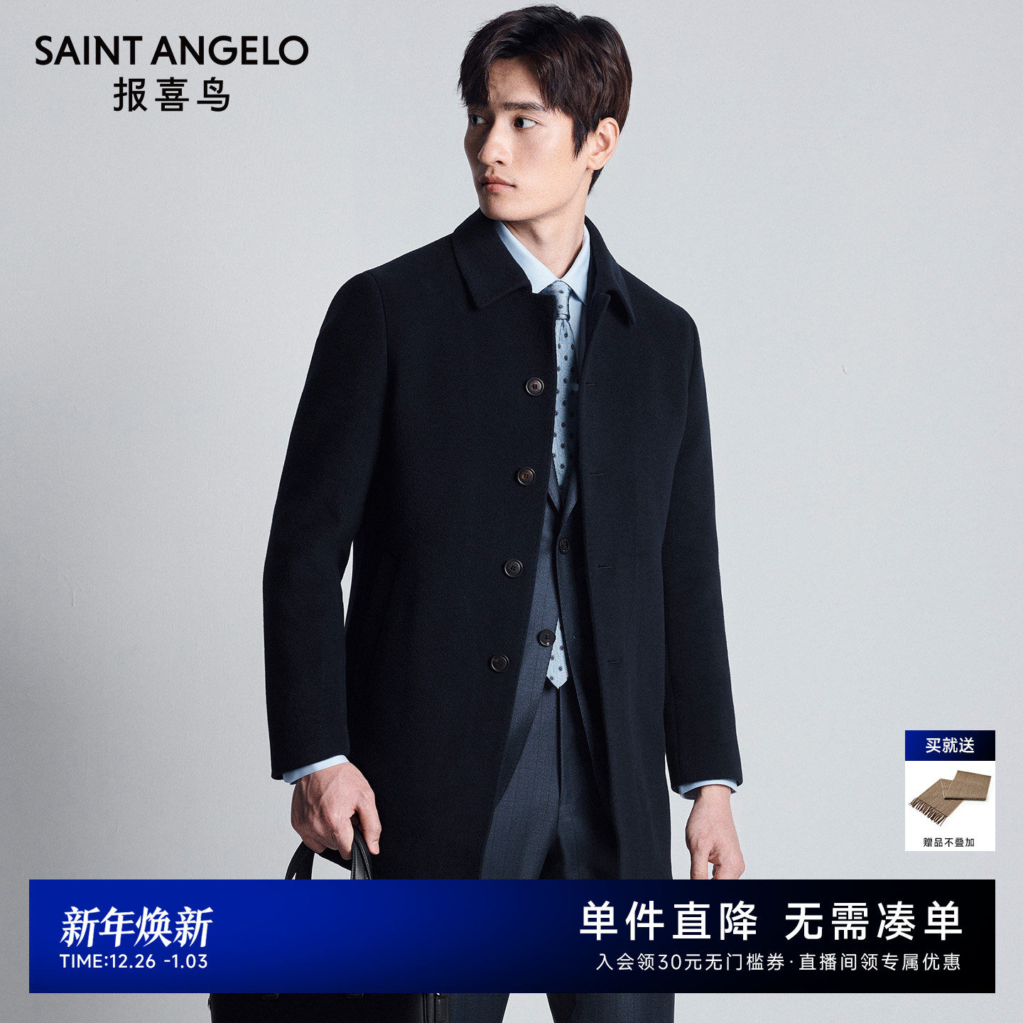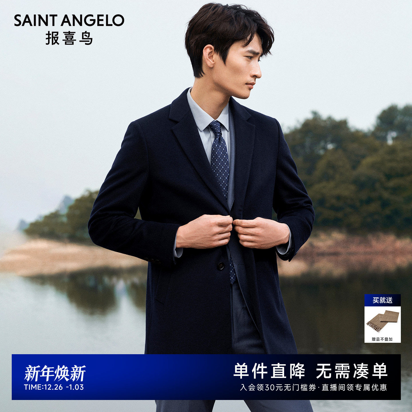 【柴斯特羊绒】报喜鸟男士秋冬新款商务正装毛呢大衣羊毛藏青外套