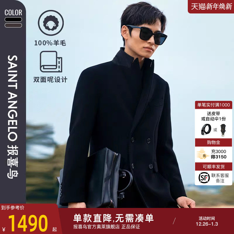 - 双面 毛呢 大衣 男