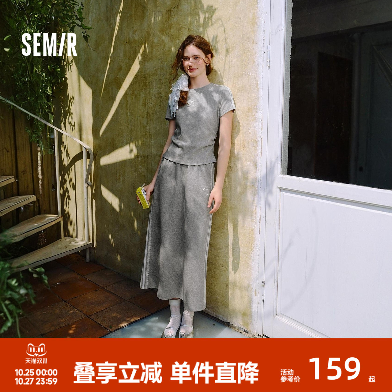 森马套装女小心机短上衣高腰半身裙2025新款夏拼接蕾丝两件套显瘦
