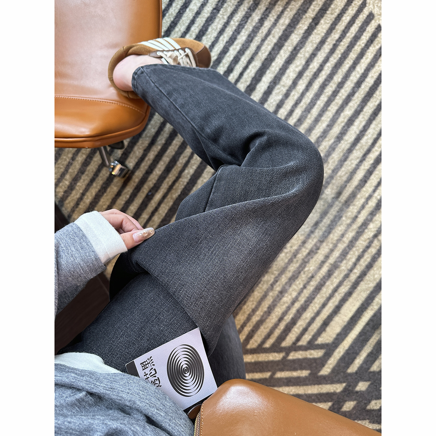 高腰窄版直筒裤黑灰色牛仔裤女秋冬2025新款阔腿裤显瘦烟管长裤子