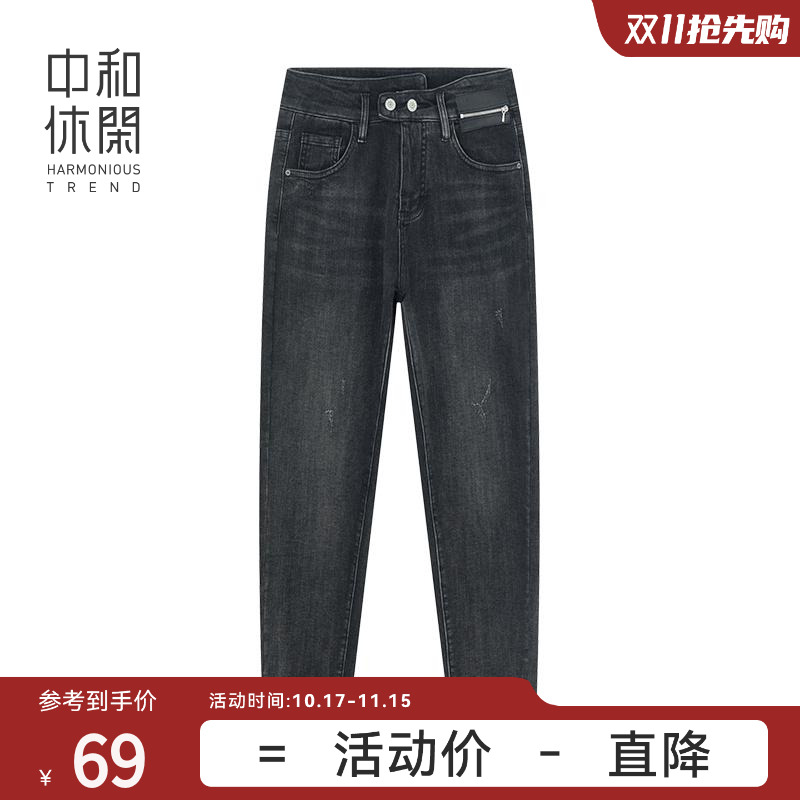 中和休闲冬装加厚牛仔裤女微宽松水洗小脚裤子黑灰色通勤百搭长裤