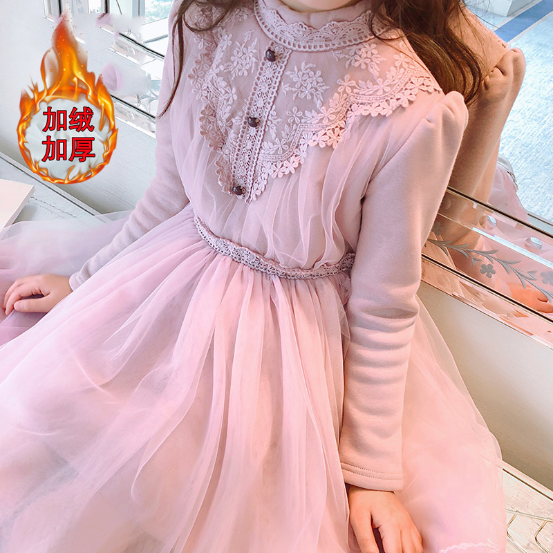 冬季女童加绒连衣裙网纱公主裙儿童加厚蓬蓬纱长裙中大童宝宝裙子