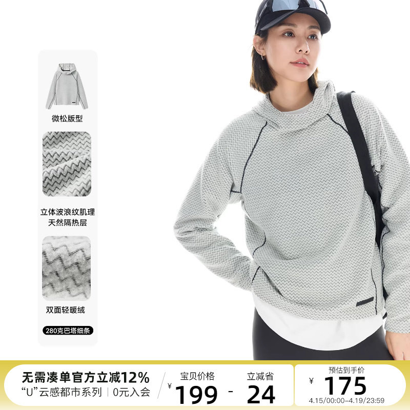 CLOUDSPACE【一体绒】双面绒波浪纹肌理卫衣春季连帽套头衫上衣女