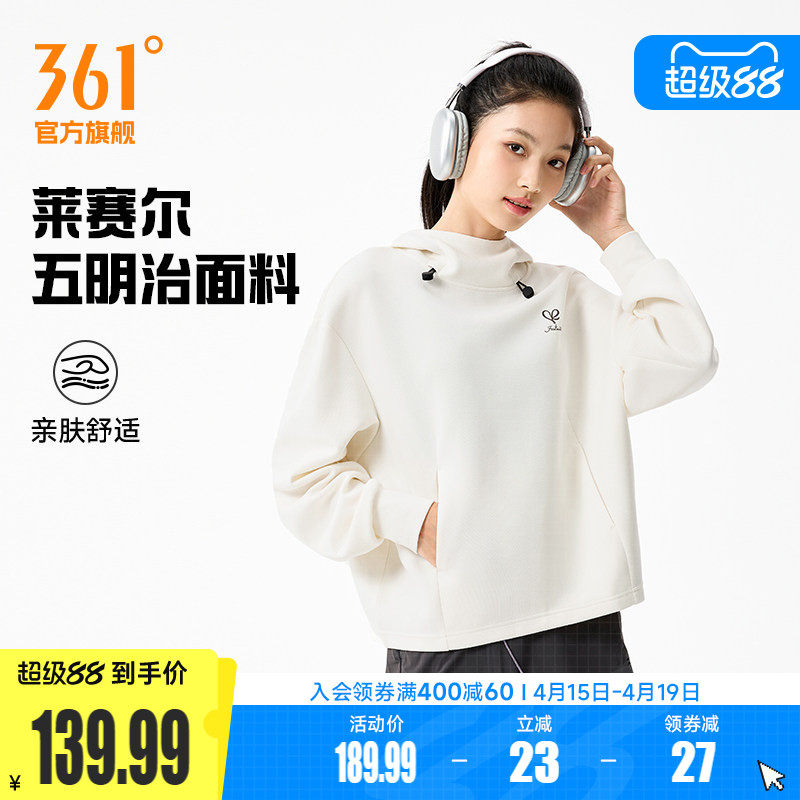 361运动卫衣女2025秋冬新款连帽宽松套头衫女士莱赛尔五明治卫衣