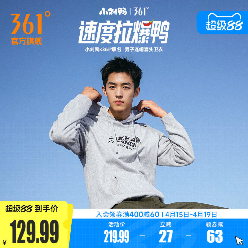 361小刘鸭联名运动卫衣男2025秋季新款连帽套头卫衣宽松休闲上衣