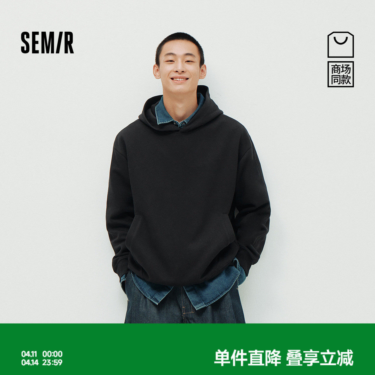 商场同款|森马卫衣男春季纯色连帽上衣情侣装2026新款基础套头衫