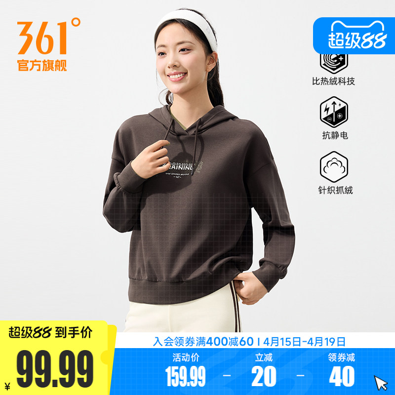 361运动卫衣女士2025秋冬新款加绒保暖连帽套头卫衣宽松休闲上衣