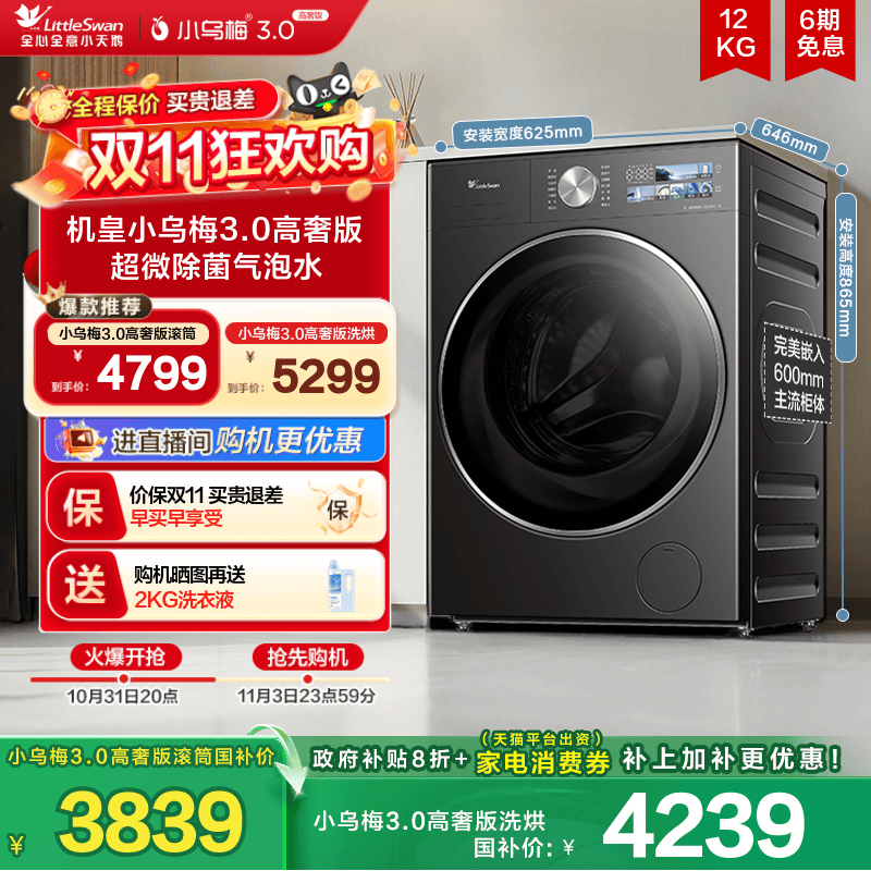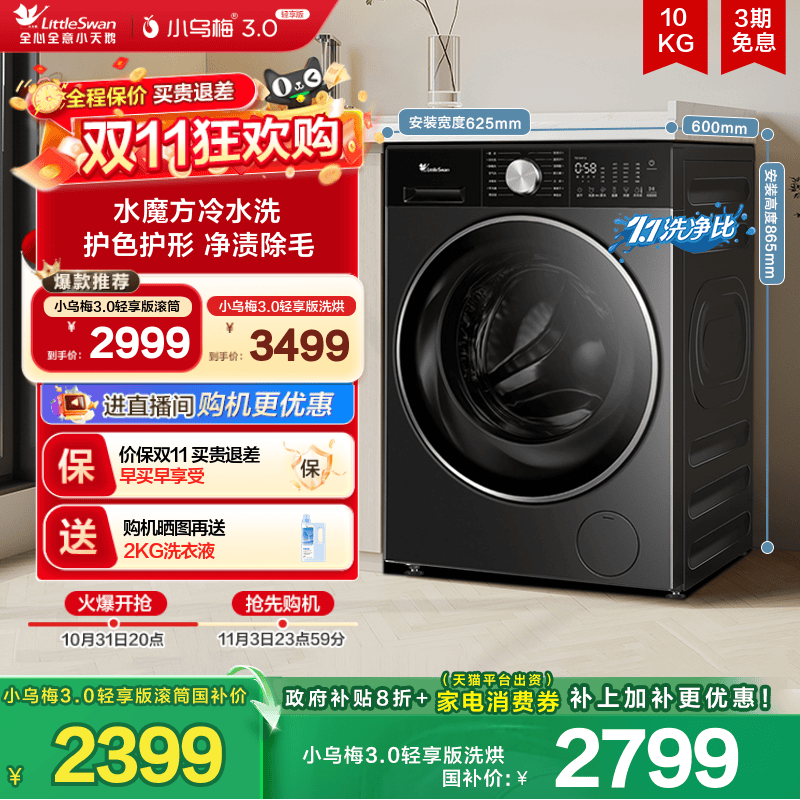 【李佳琦直播间生活节】小天鹅小乌梅3.0洗烘套装10/12kg洗衣机