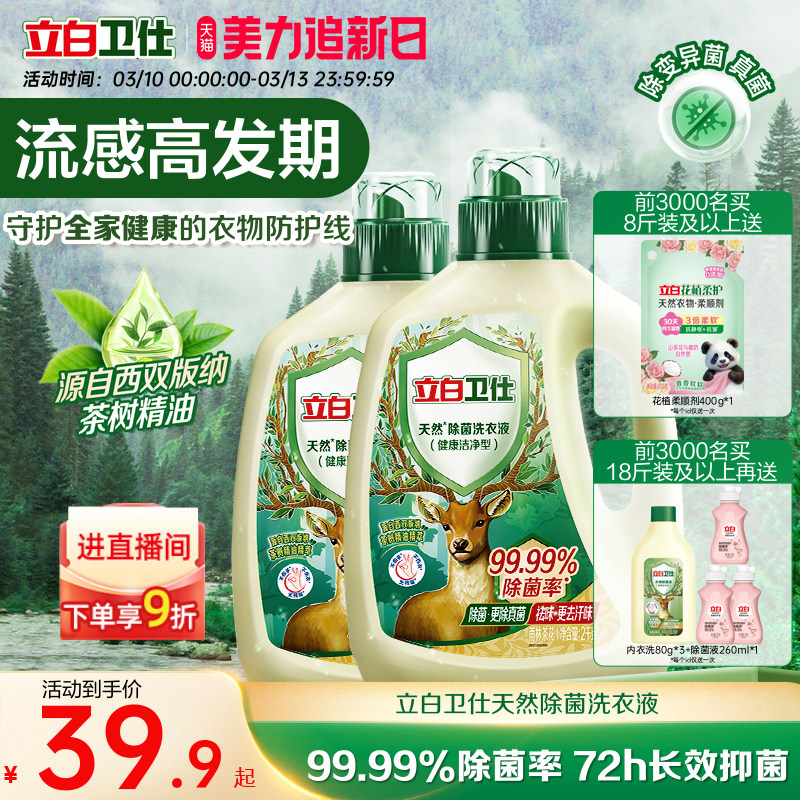 立白卫仕天然植物除菌洗衣液家用除真菌除螨茶香正品洁净机洗手洗