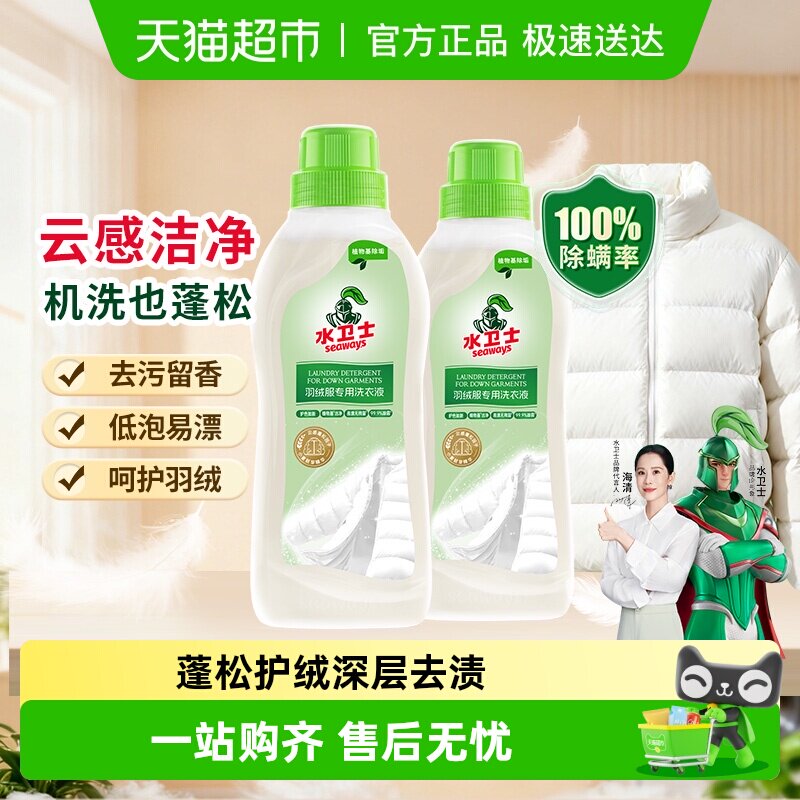 水卫士羽绒服洗衣液衣物柔软蓬松防静电除菌除螨去污机洗手洗2瓶