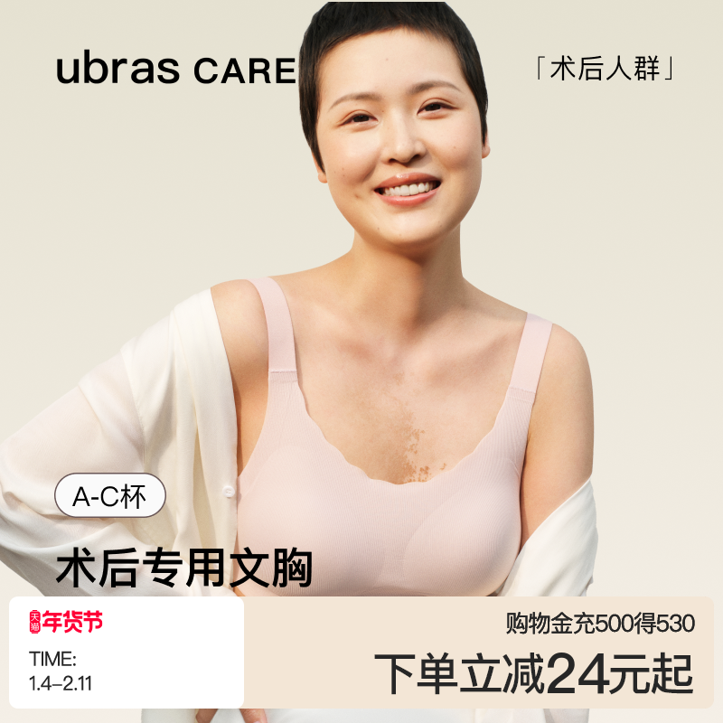 ubras CARE乳腺术后轻呼吸光面呵护文胸可置义乳无痕舒适义乳文胸